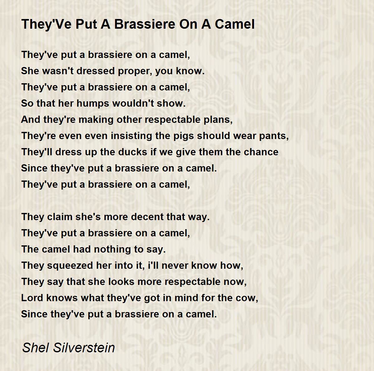 Shel Silverstein's They've Put A Brassiere Ont He Camel Poem / If you ask any russian on the street who his favorite poet is, in most cases they will answer:. They've put a brassiere on a camel by shel silverstein: A funny poem from shel silverstein's classic anthology a light in the attic.. If you ask any russian on the street who his favorite poet is, in most cases they will answer: They looked for it everywhere/ somewhere, but they didn't find it. They've put a brassiere on a camel, the camel had nothing to say.